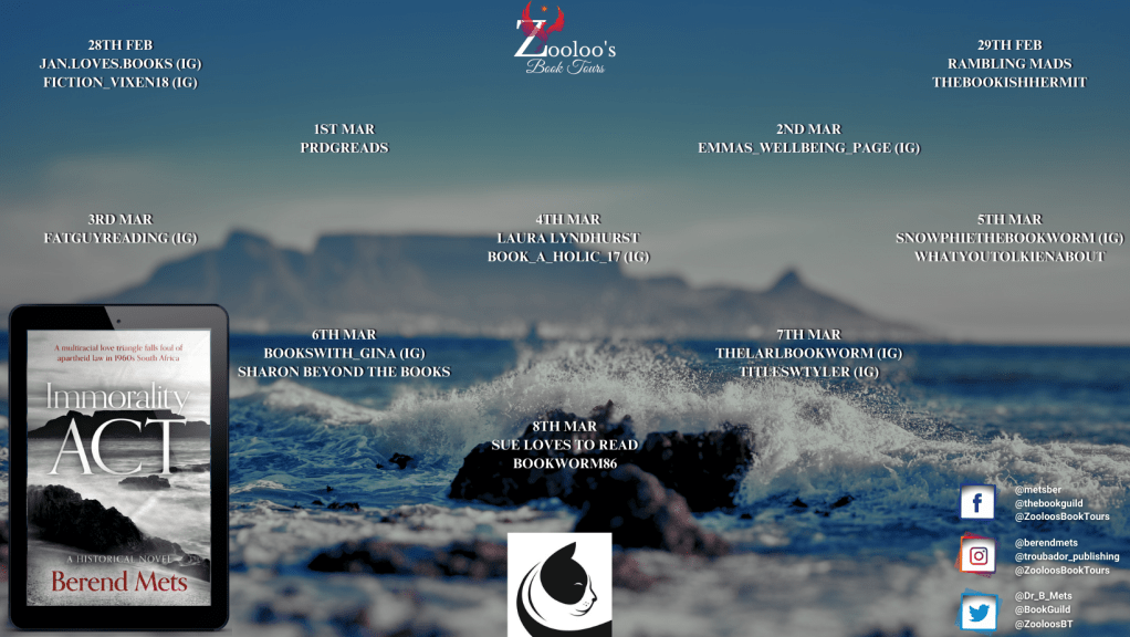Berend Mets has created such a compelling novel. He has crossed every t and dotted every i in his research. I seriously got caught up in the Immorality Act. I didn’t even feel like any of this was fiction, even though my own mind knew it was. I lived and breathed these peoples lives every second I spent reading.
