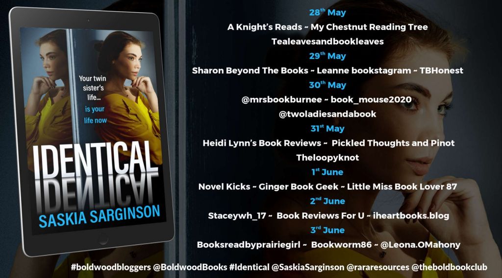 What a chilling and tense thriller! Saskia Sarginson has skilfully written this book in a way that had me captivated. Narrated from the past and present day by both of the twins. I thought this worked so well, I always prefer to have multiple points of view. I find I get a more fuller picture of everything. This time, I have to say the twists and the plotting kept me glued to the pages and in suspense constantly.