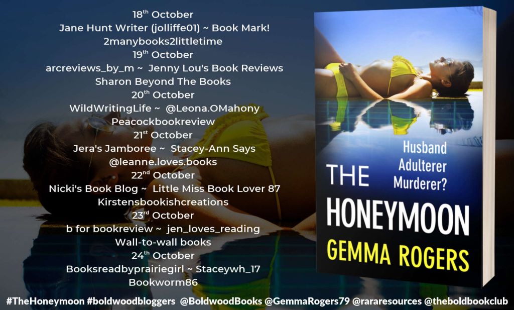 Gemma Rogers always writes thriller that have me on the edge of my seat and The Honeymoon was no different. There are twists upon twists, I wondered just how many she could fit in at one point!