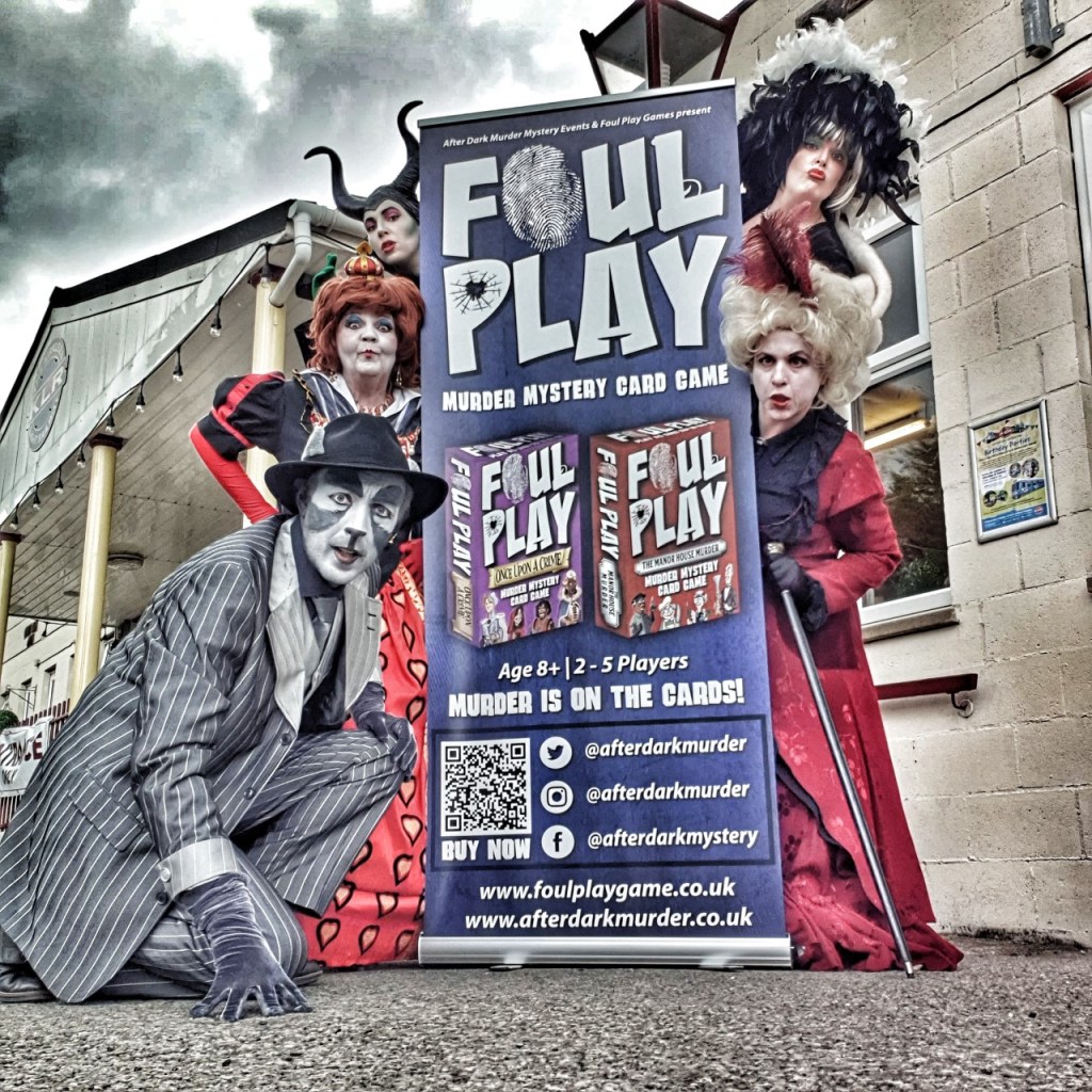 Well, lockdown does strange things to people, especially actors who can’t go out and perform. So one fateful evening, Ben & Lee Cooper-Muir decided to come up with a whole new way to murder people. Keeping their cards close to their chests they plotted and schemed until Foul Play : The Murder Mystery Card Game was born. So, what to do next? This is where After Dark enters the picture. After all, Ben and Lee were two of the operators of the infamous murder mystery company. Maybe they could collaborate to bring the game to the masses. When Lockdown restrictions were eased a top-secret meeting was held with the other criminal masterminds behind After Dark, Helen Burrows, Sophie Webster & Tom Fisher and a pact was made. The game would be launched and licensed under the After Dark banner. In true After Dark style, the team burst into action and then began the beta testing, design updates, promotional planning, character changes, proofing, proofing and more proofing until finally all the kinks were ironed out, mysteries solved, and FOUL PLAY : Manor House Murder came to life!
