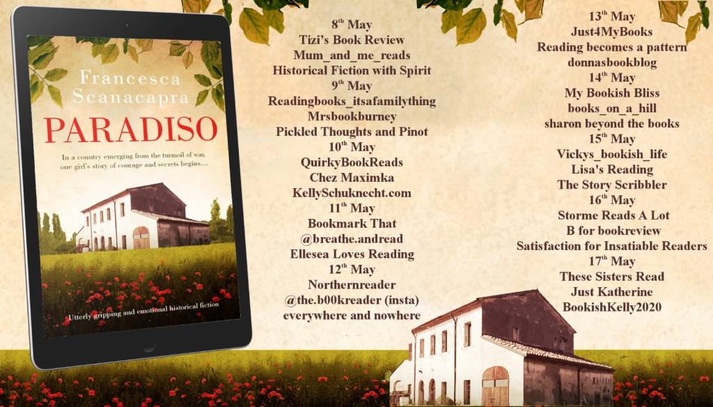 ‘Paradiso’ by Francesca Scanacapra is a beautifully crafted book of historical fiction that is inspired by true stories told to Francesca Scanacapra by her Italian family and set in locations where she spent much of her childhood.