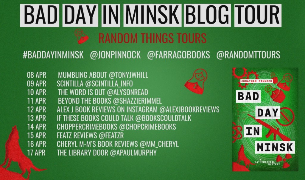 ‘Bad Day In Minsk’ by Jonathan Pinnock is the fourth book in the Mathematical Mystery Book series. Hands up here, I haven’t read the other three but got so carried away with the cover and synopsis of this I grabbed the opportunity to take part in the book tour rather quickly! I was automatically interested and thought this book sounded so intriguing and different.