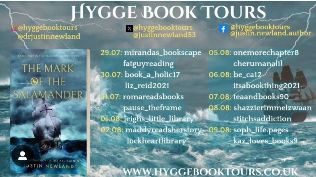 I am over the moon to be able to bring you my review for The Mark of The Salamander by Justin Newland. Thanks to Hygge Book Tours and the author for my gifted ebook to take part.