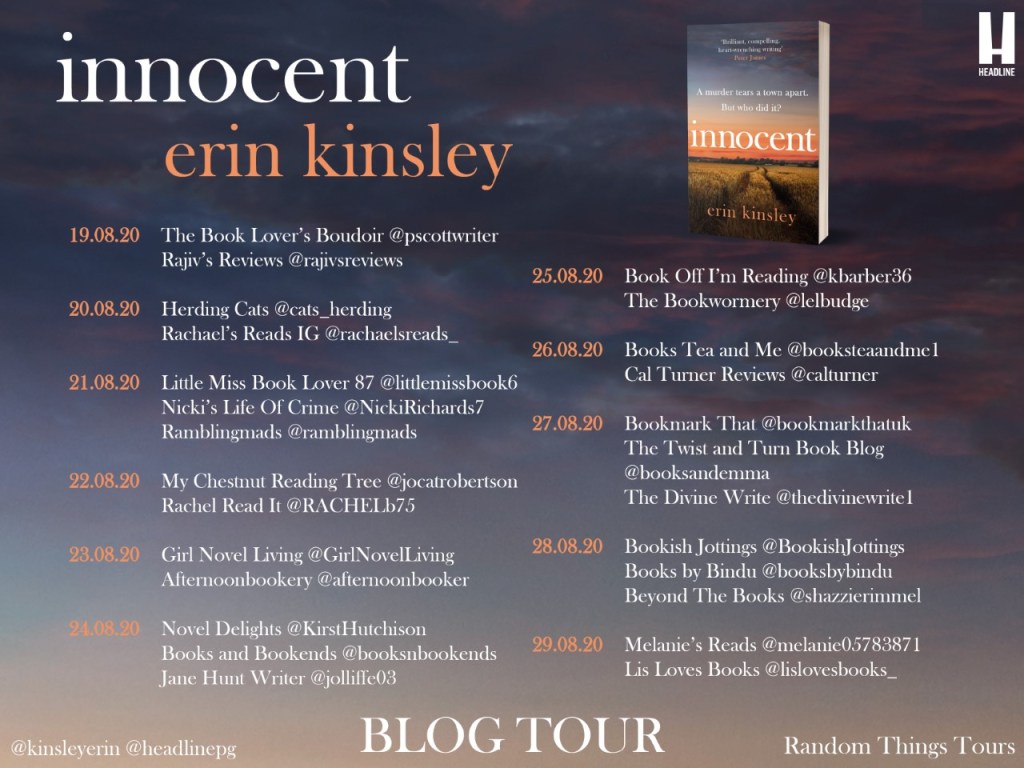 Innocent by Erin Kinsley is a very character-driven crime mystery that is a compelling story. Set in the small town of Sterndale where there is a hotbed of gossip and everyone judges everyone else. The one thing the people of this town don’t expect is to be right in the centre of media attraction.