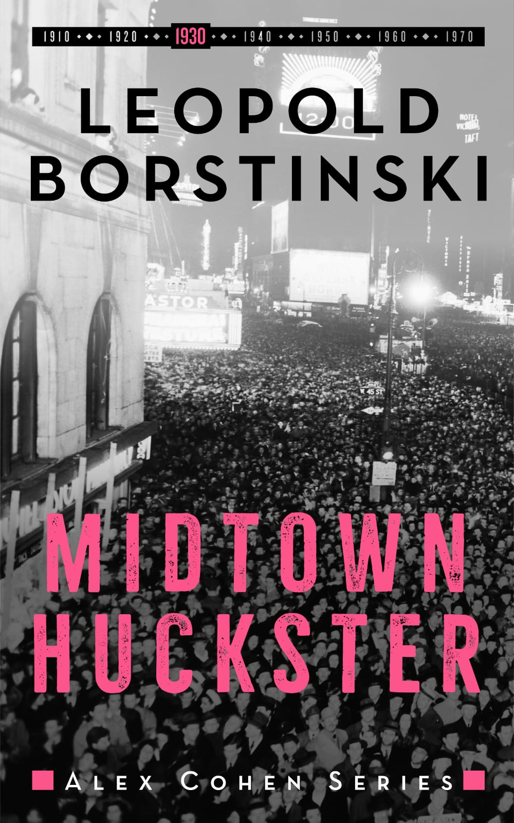 ‘Midtown Huckster’ by Leopold Borstinski, is the third book in the series about Alex Cohen, a historical noir novel which from the first book, envelopes you with the early days of the Jewish New York mobsters and the shady activities involved.