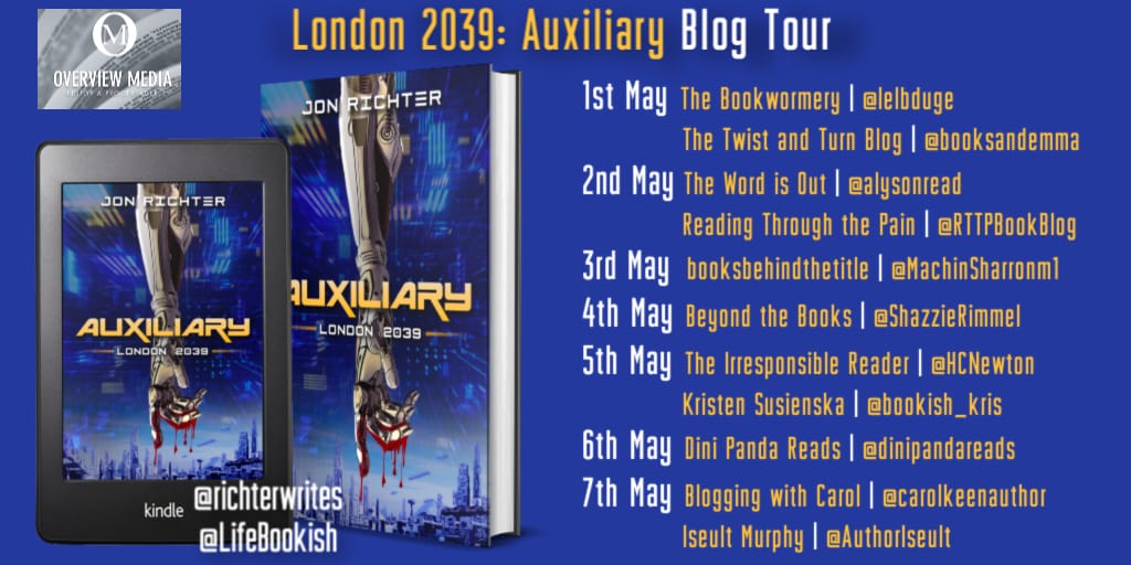 Thank you To Heather Fitt at Overview Media for asking me on Jon’s Blog Tour for Auxiliary: London 2039, and to Jon Richter for allowing me a copy.