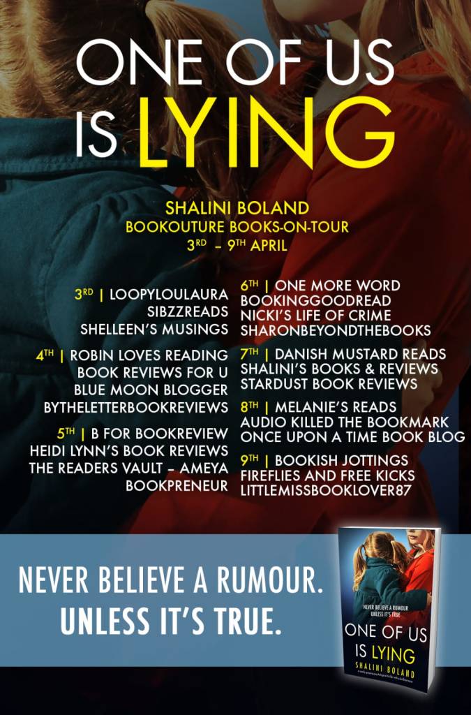 Shalini Boland’s newest book, One of Us is Lying, is as one would expect if you have previously read anything by Shalini, as unputdownable as anything she has written. Another book which, once you pick it up, you are immersed in the fictional world she has created.