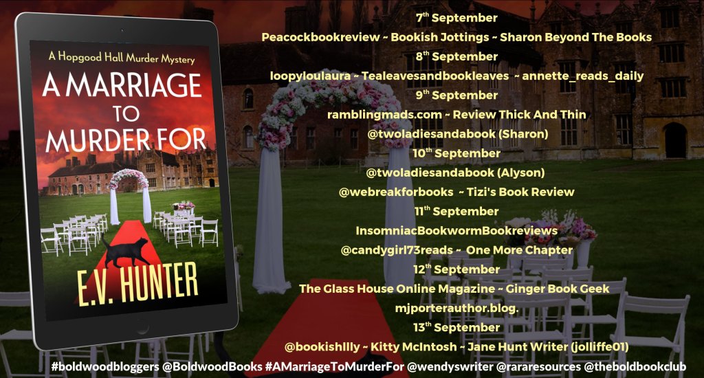 Welcome all! Today sees my review for A Marriage To Murder For by E.V. Hunter. Thanks to Rachel’s Random Resources and Boldwood Books for the gifted ebook to write my honest review.