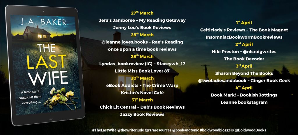 Welcome back to the blog, everyone! Today, I am back with my tour post for The Last Wife by J.A Baker. Thanks to Rachel’s Random Resources and Boldwood Books for the gifted ARC to write my honest review.