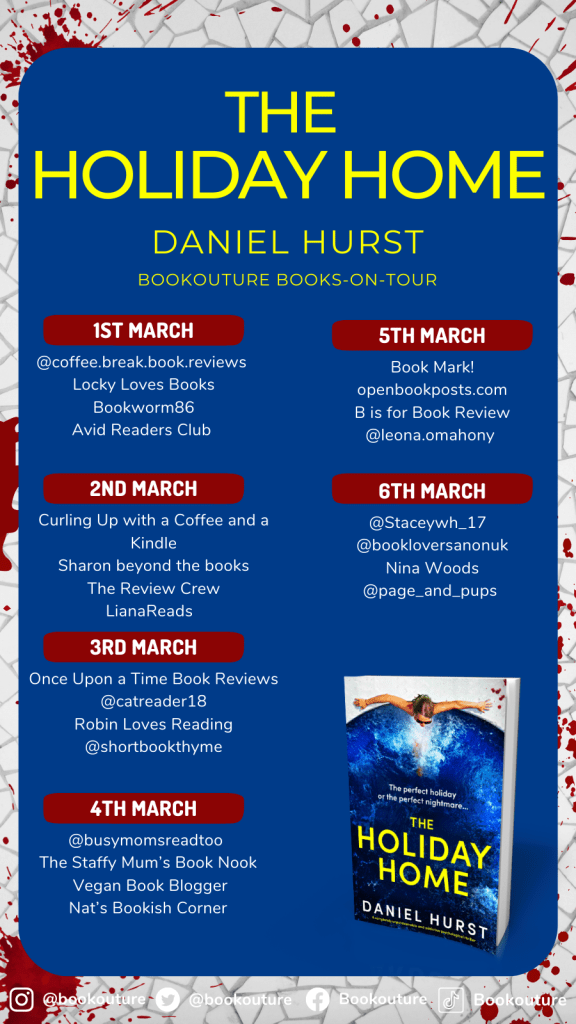 Hi all! I’m back with a stop on the Bookouture Book Tour for The Holiday Home by Daniel Hurst. Thanks to Bookouture and NetGalley for my place on the tour and a copy of the ebook for my honest and unbiased review.